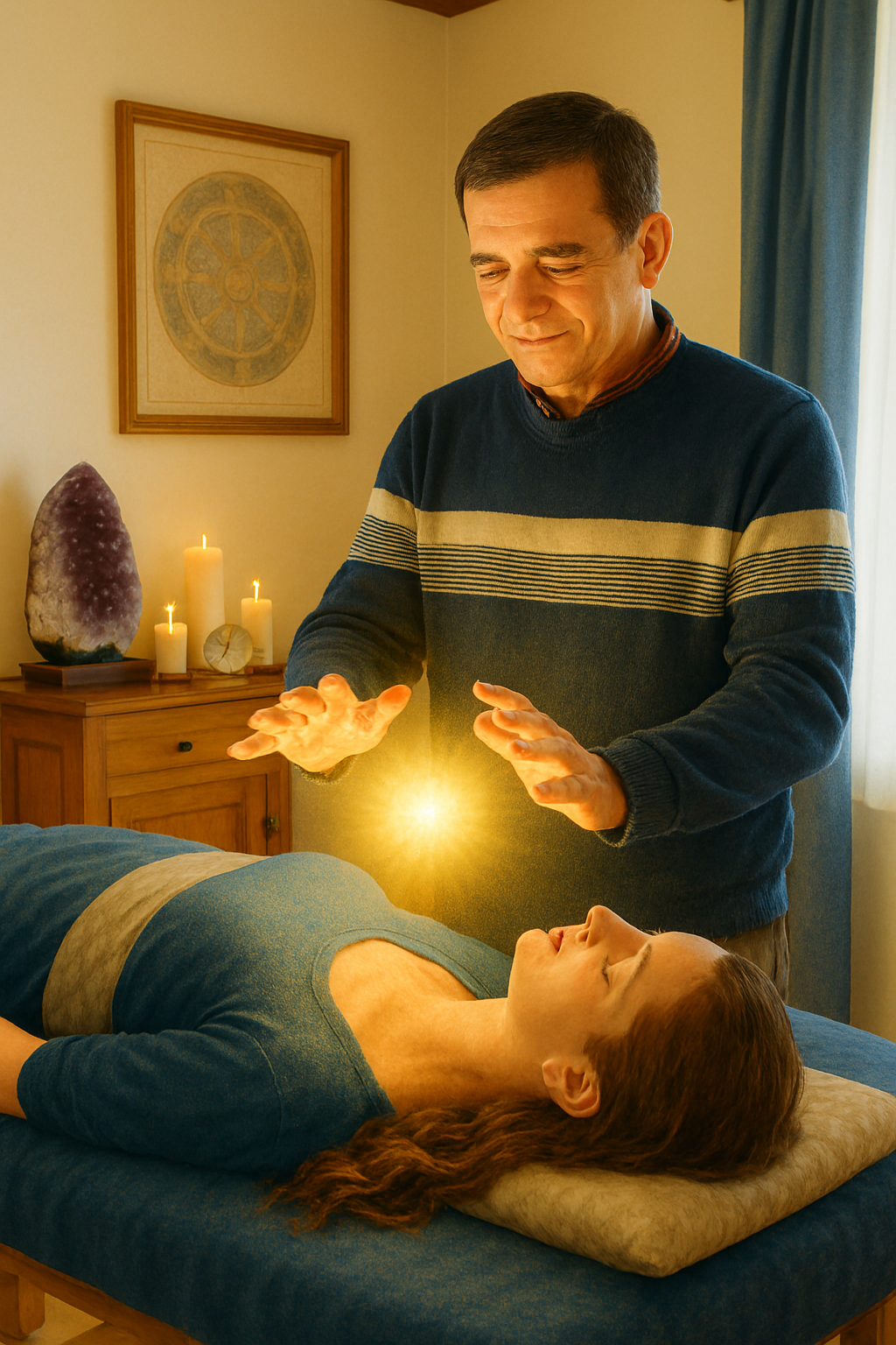 Mon accompagnement est profondément intuitif, sacré et personnalisé. Loin des protocoles figés, je me connecte à votre énergie, ressentant ce qui doit être libéré ou apaisé, et j'adapte chaque soin à l'instant présent. Concrètement, cela se manifeste par une connexion énergétique immédiate : je perçois les tensions et blocages sans que vous ayez besoin de tout exprimer. Mes gestes et placements sont guidés par mes ressentis. Je crée un espace bienveillant où vous pouvez vous déposer en toute sécurité, une dimension sacrée qui apporte profondeur et douceur. Mon travail est ciblé et précis, agissant là où l'énergie l'appelle, pour libérer une charge émotionnelle, apaiser une douleur ou réharmoniser un centre énergétique. C'est un accompagnement humain, sans jugement, avec une présence authentique.